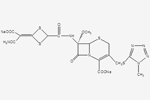 Chemical name: (6R,7S)-7-[4-(carbamoylcarboxymethylene)-1,3-dithietane-2-carboxamino]-7-methoxy-3-[[(1-methyl-1H-tetrazol-5-yl)thio]methyl]-8-oxo-5-thia-1-azabicyclo[4.2.0]oct-2-ene-2-carboxyllic acid