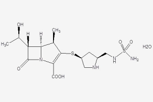 | Chemical name: | (+)-(4R,5S,6S)-6-[(1R)-1-Hydro-xyethyl]-4-methyl-7-oxo-3-[[(3S,5S)-5-[(sulfamoylamino)-methyl]-3-pyrrolidinyl]thio]-1-azabicyclo[3.2.0]hept-2-ene-2-carboxylic acid monohydrate |